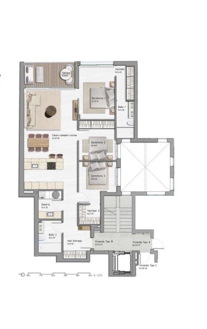 The development is located in Guardamar del Segura, Alicante . The building enjoys a privileged location, on the border between the town and a large pine forest. It offers the convenience of living in the heart of Guardamar del Segura, just steps from all amenities and a short walk from a beautiful fine sandy beach. Guardamar del Segura boasts excellent transport links to Alicante International Airport and Elche Airport, as well as hospitals, shopping centers, supermarkets, banks, and schools.