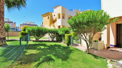 A bright and inviting ground floor apartment with two bedrooms, two bathrooms, and a generous 36m2 private garden, located within the sought-after gated community of Punta Marina in Punta Prima.