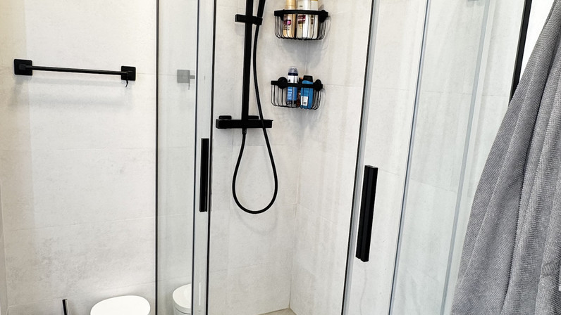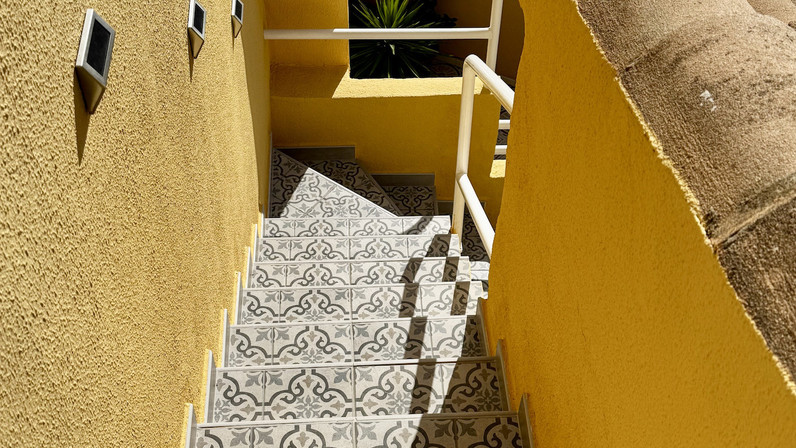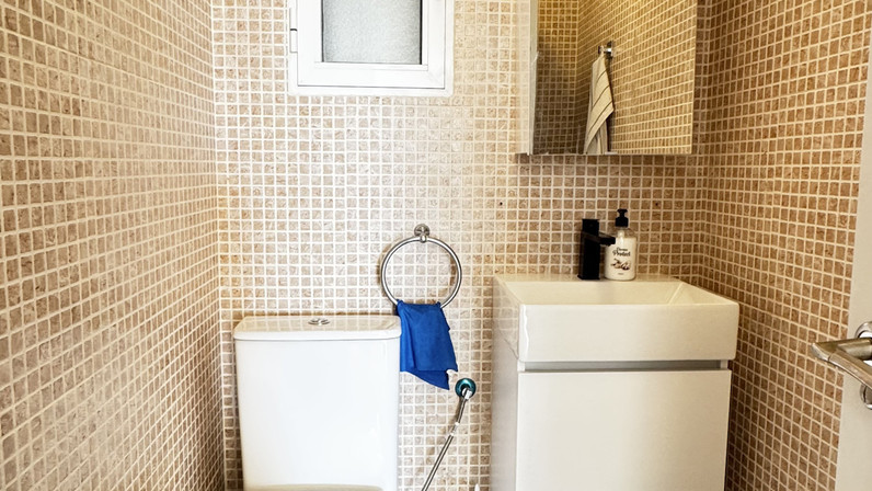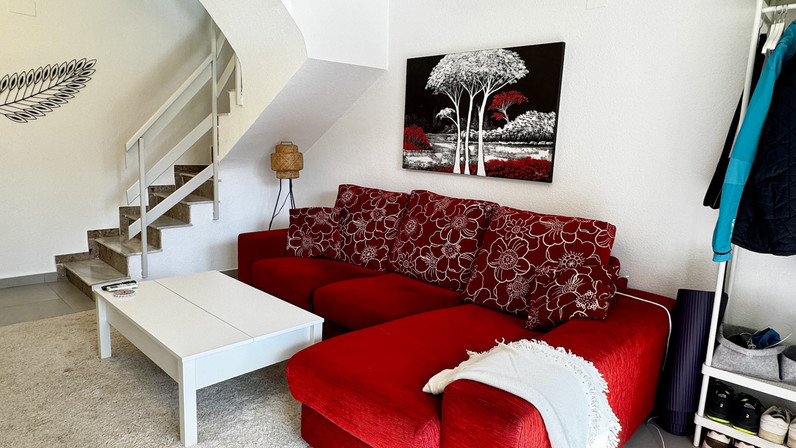 Renovated bathroom with shower and from the master bedroom you can go out to a wonderful south-facing balcony. If these patios are not enough, this townhouse has a staircase up to a roof terrace that offers 360 degree view and also view over the Mediterranean Sea.