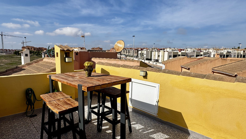 Rosaleda and Los Frutales are known for being lively all year round. There are supermarkets and restaurants around the corner. The bus stops outside the door and can take you to both central Torrevieja and La Mata Beach. About 10 minutes walk and you will be at the sea. Playa los Locos is the nearest sandy beach but if you want rocks and clear water it is straight down from this property.
