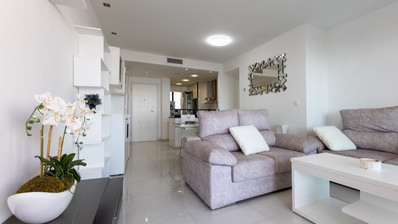 We offer you for sale this beautiful apartment situated in the best frontline community in Punta Prima - in "Sea Senses". On the first spacious terrace you can enjoy panoramic sea views and the communal areas, and from the second one surrounding beauty. Apartment consists of 2 bedrooms, 2 bathrooms, living room, fully equipped kitchen with breakfast bar and utility room.