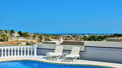 This exceptional detached villa is set on a generous private plot within El Presidente, Orihuela Costa, and stands out for its stunning, unobstructed sea views from all aspects of the property, including the main living areas, terraces, and pool area.